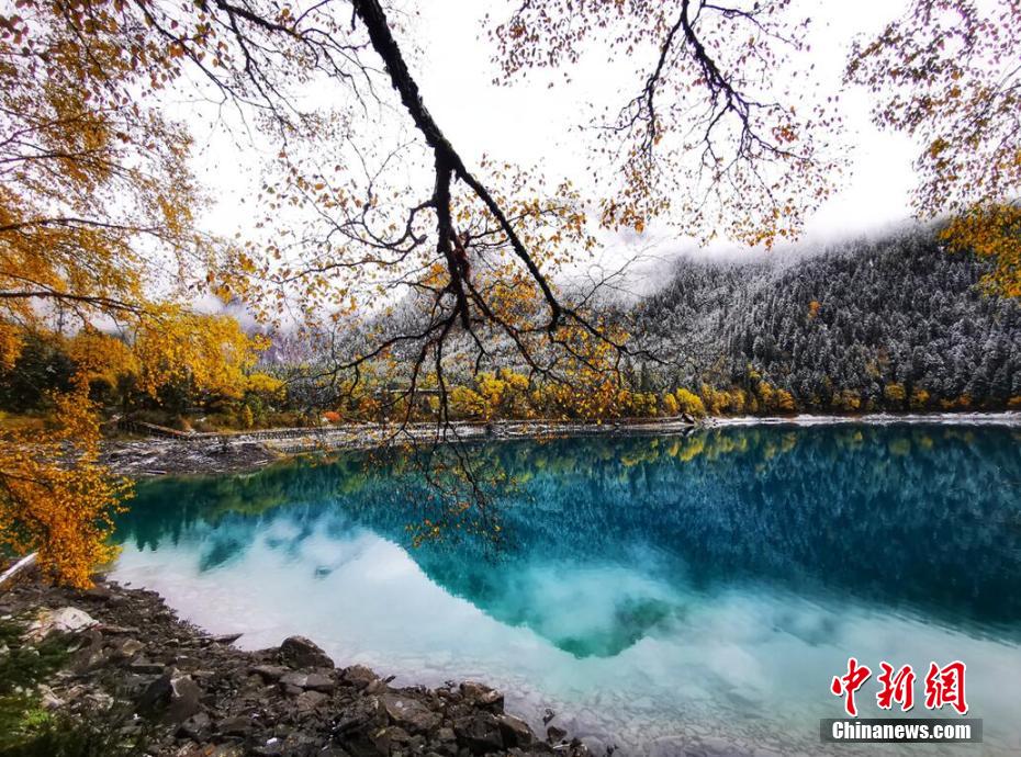 十月,九寨溝長海、原始森林等景點(diǎn)迎來入秋后的第一場雪。澄凈碧藍(lán)的海子和金色的彩林與潔白的雪花相映相襯,構(gòu)成一幅靜謐的美麗畫卷。遠(yuǎn)遠(yuǎn)看去,成片的彩林被一朵朵雪花點(diǎn)綴,美得像童話世界一般。 梁峰 攝