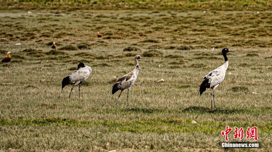 圖為黑頸鶴群在互相觀望。烏蘭縣融媒體中心 供圖
