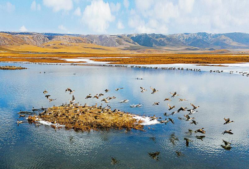 四川若爾蓋濕地國(guó)家級(jí)自然保護(hù)區(qū)里,九曲回轉(zhuǎn)的河流、星星點(diǎn)點(diǎn)的湖泊和沼澤點(diǎn)綴在遼闊的草原之上,四季景色壯美。近些年,當(dāng)?shù)卣`行黃河流域生態(tài)保護(hù)與高質(zhì)量發(fā)展的要求,統(tǒng)籌兼顧生態(tài)保護(hù)與民生發(fā)展,采取護(hù)濕還水、禁牧還草、防沙治沙等生態(tài)修復(fù)治理措施,保護(hù)區(qū)生態(tài)環(huán)境不斷向好。