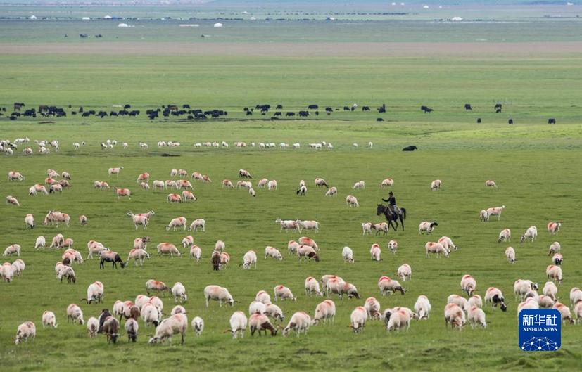 牛羊徜徉在四川若爾蓋濕地國(guó)家級(jí)自然保護(hù)區(qū)里(2022年7月25日攝)。新華社記者 江宏景 攝