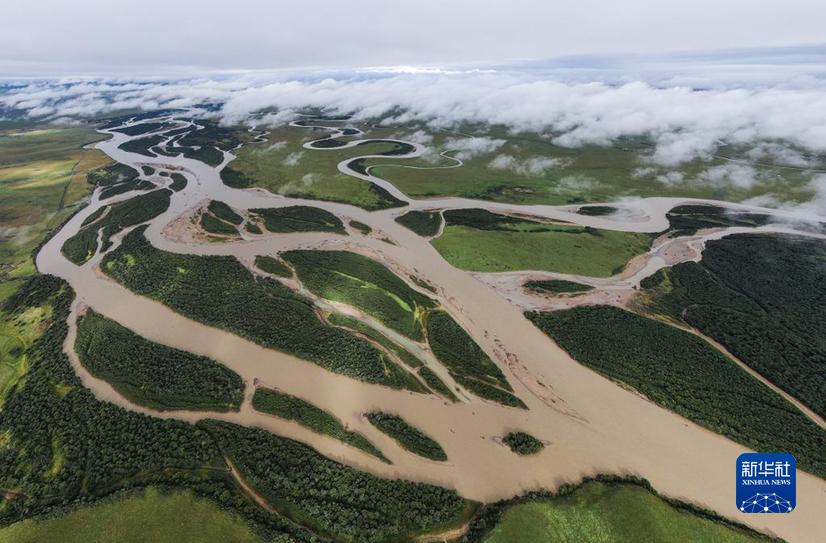 俯瞰黃河若爾蓋縣唐克鎮(zhèn)段一角(2022年8月16日攝,無(wú)人機(jī)照片)。新華社記者 江宏景 攝