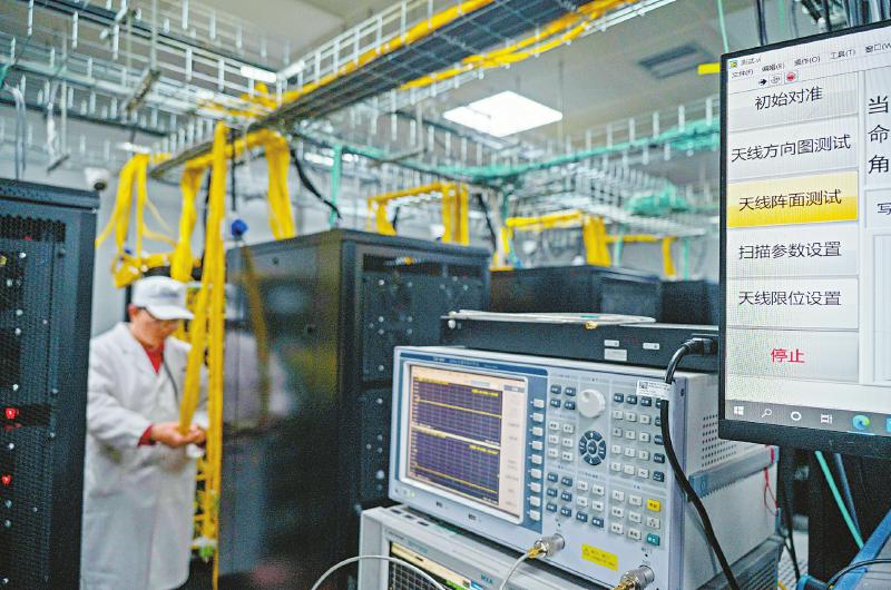2022年10月28日 科研人員在調(diào)試圓環(huán)陣太陽射電成像望遠(yuǎn)鏡系統(tǒng)設(shè)備。