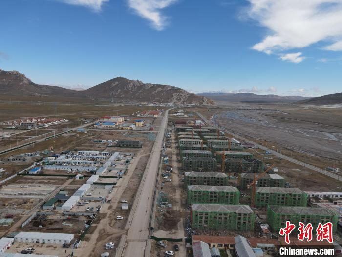 圖為無人機(jī)航拍災(zāi)后重建農(nóng)牧民D級住房項目?,敹嗫h委宣傳部 供圖