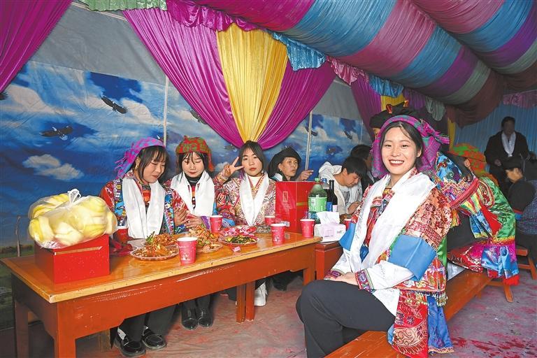 新康村舟曲避險(xiǎn)搬遷群眾在具有民族特色的新家聚會,臉上洋溢著幸福的喜悅。