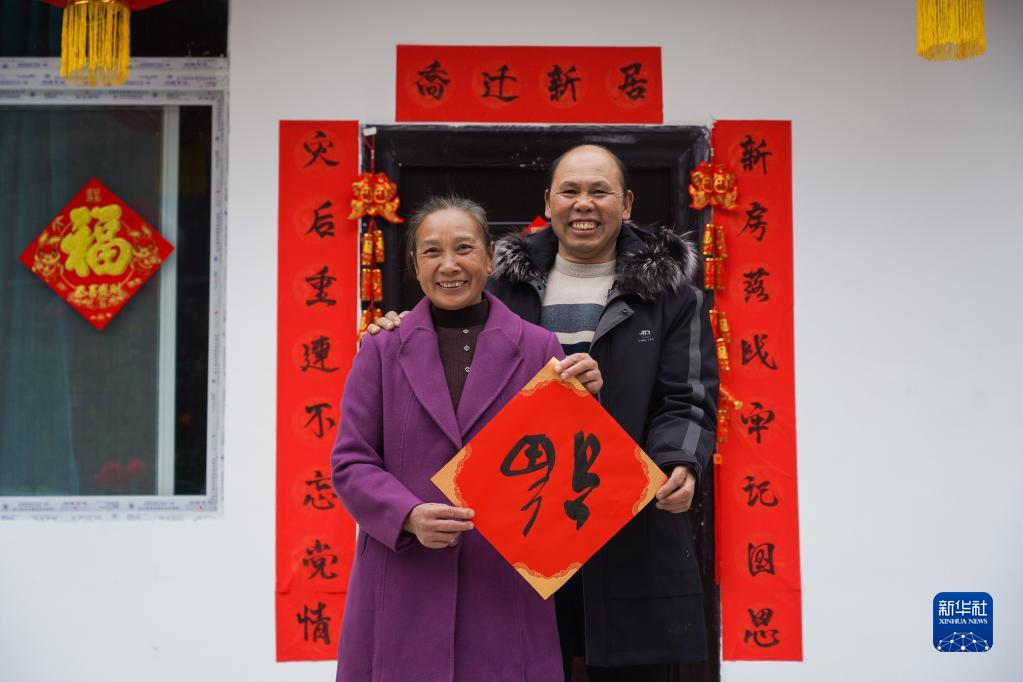 1月22日,石棉縣新民藏族彝族鄉(xiāng)農鄉(xiāng)村二組村民劉芳蓉和丈夫在新居前合影。石棉縣融媒體中心供圖