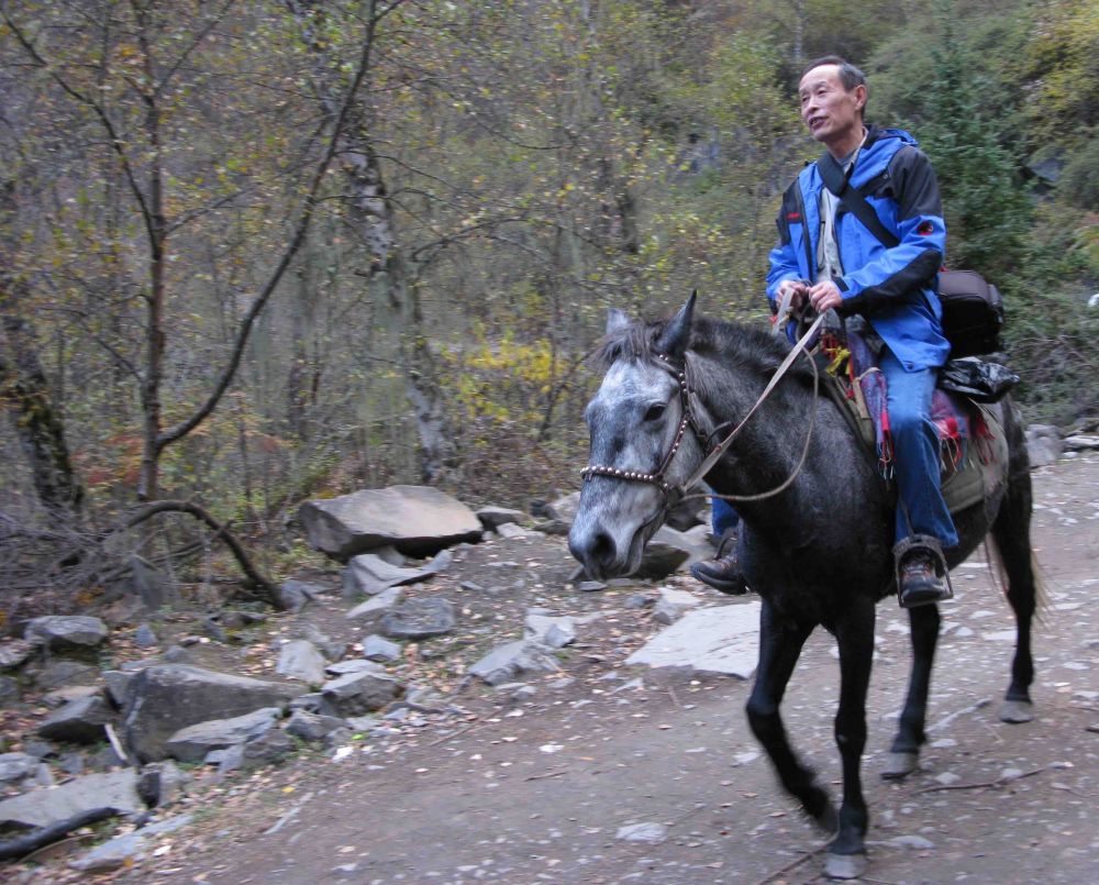 2014年10月27日,印開蒲在四川省茂縣松坪溝科考時騎馬前往目的地(資料照片)。新華社發(fā)