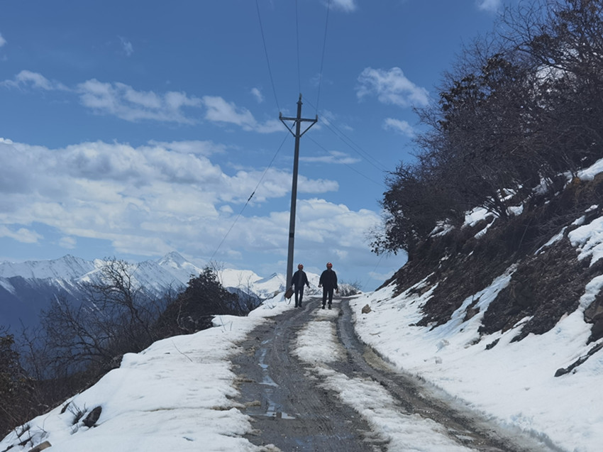 遠遠望去,10千伏線路在大雪中變得模糊,車輛的黃色燈光到達之處,早已等在此處的牧民彭措使勁揮著手,“這里,就是這里?!睅е鴿庵夭卣Z發(fā)音的話語中露出的喜悅不言而喻。