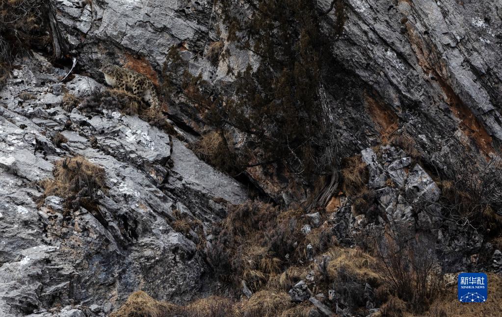 2月21日,在青海省玉樹藏族自治州雜多縣昂賽鄉(xiāng)境內(nèi)的昂賽大峽谷內(nèi),一只雪豹正在活動(dòng)。新華社記者 張宏祥 攝
