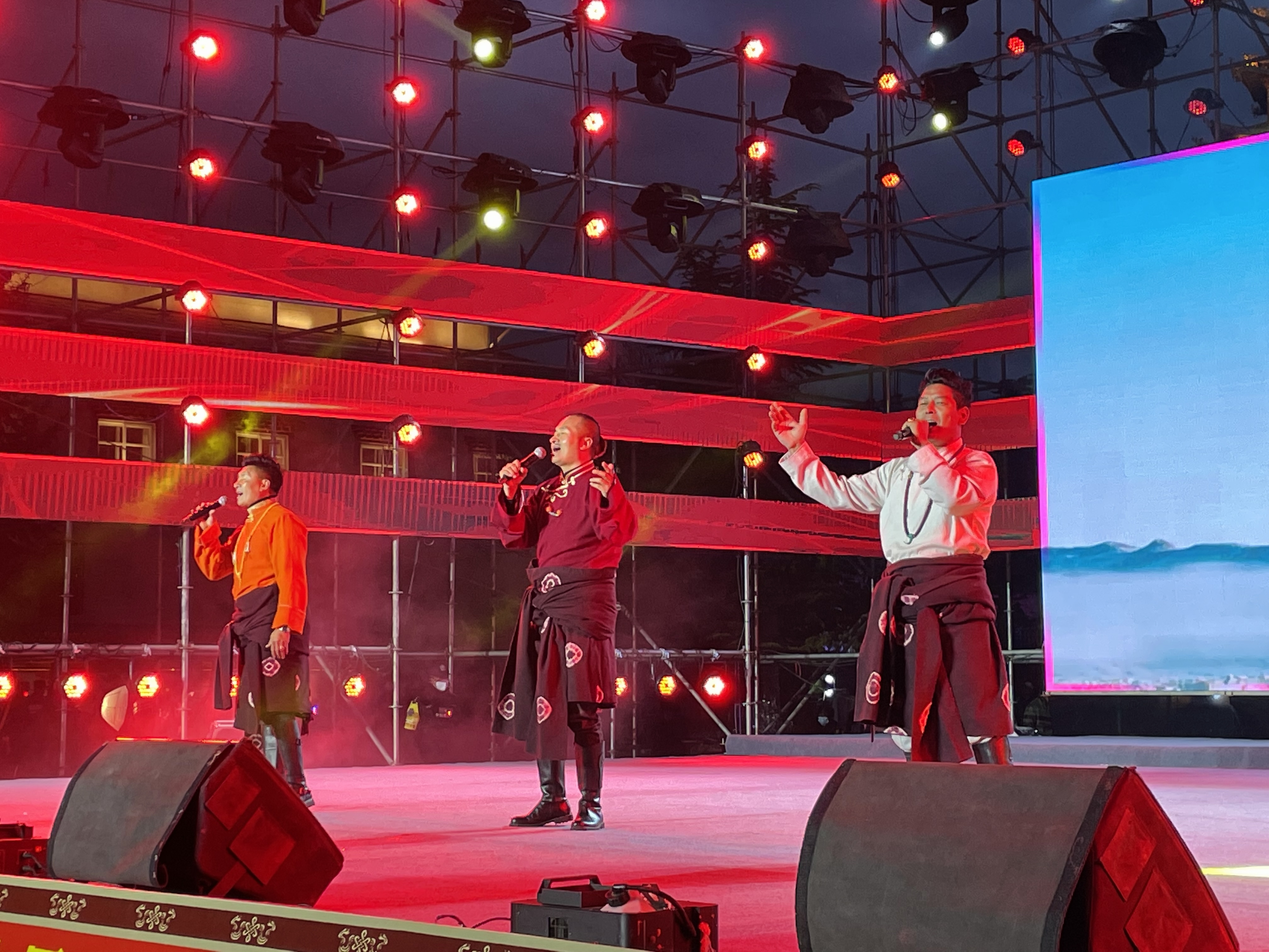 《新迪慶》《擁抱維西》《創(chuàng)衛(wèi)之歌》一個個本土歌手用自己的歌聲唱響了家鄉(xiāng)的巨變,歌頌了美好的新時代。《五十六個民族同唱敬酒歌》《阿日.斯那卓瑪》《能卡》一首首獨具地域文化特色和民族風(fēng)情的歌輪番唱響,一次次將現(xiàn)場觀眾的熱情點燃,點點的手機燈光猶如晚星一般,在舞臺燈光下依舊閃亮。