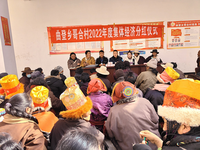圖為曲登鄉(xiāng)哥合村集體經(jīng)濟分紅現(xiàn)場。