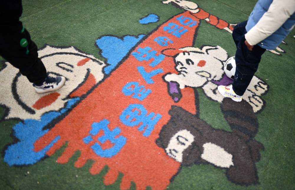 3月1日,在玉樹州治多縣,城南幼兒園小朋友在幼兒園的球場(chǎng)上。新華社記者 張宏祥 攝