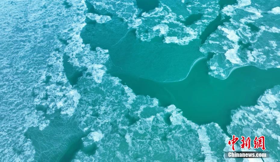 青海湖湖面封凍如破碎“玉帶”