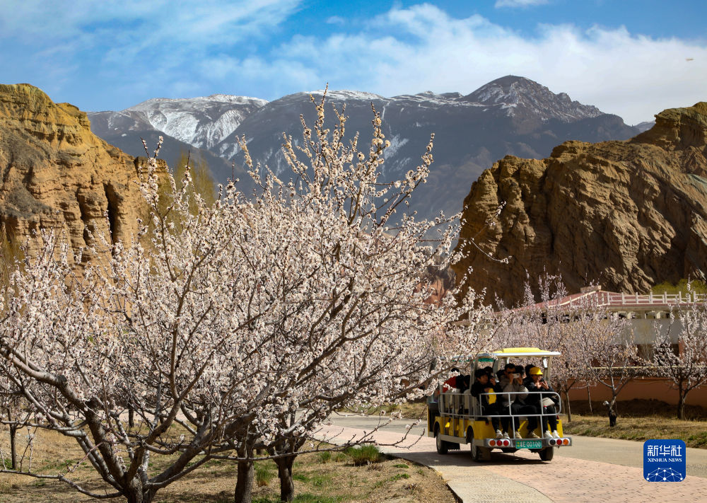 春暖花開的季節(jié),位于青海省海南藏族自治州貴德縣的貴德國(guó)家地質(zhì)公園迎來(lái)春游的游客,盛開的春花與丹霞地貌、雪山構(gòu)成一幅美麗的高原春色圖。