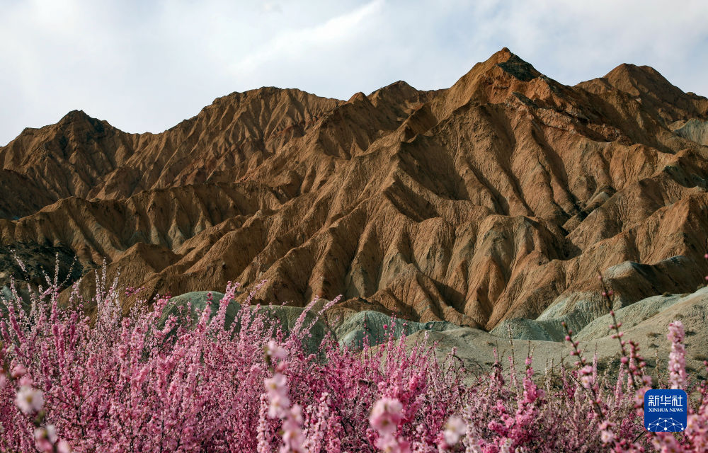 4月8日拍攝的青海貴德國(guó)家地質(zhì)公園丹霞地貌與盛開的春花。新華社記者 黃豁 攝