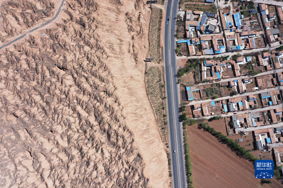 這是4月17日拍攝的青海省海南藏族自治州貴德縣境內(nèi)的丹霞地貌(無(wú)人機(jī)照片)。新華社 趙玉和 攝