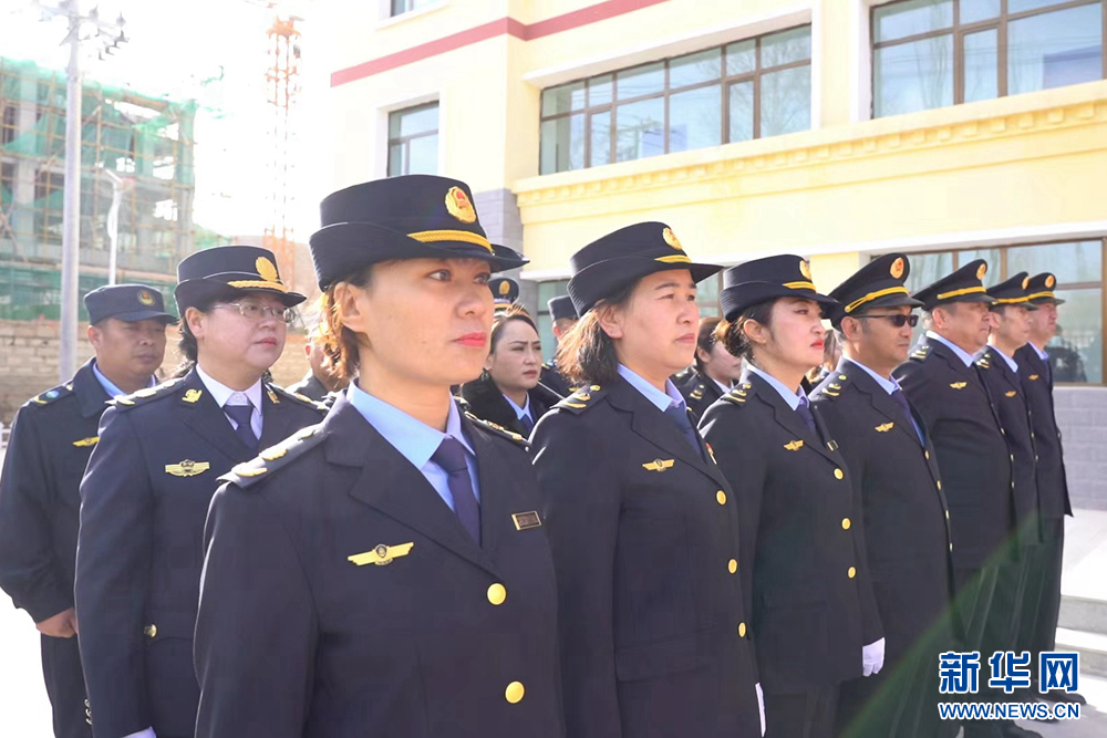 圖為共和縣綜合行政執(zhí)法局工作人員。新華網(wǎng)發(fā)(仁青多杰 攝)