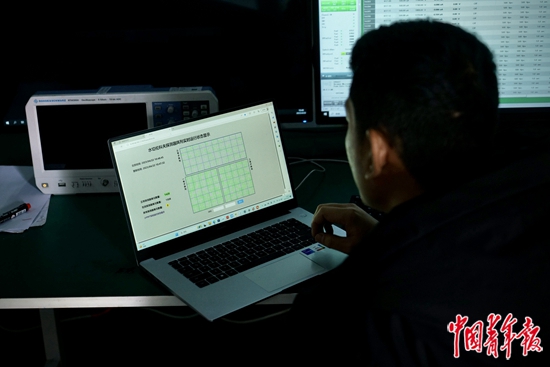 4月22日,四川稻城,一位年輕的科研人員正在查看水切倫科夫探測(cè)器陣列的實(shí)時(shí)運(yùn)行狀態(tài)。中青報(bào)·中青網(wǎng)記者 李強(qiáng) 攝