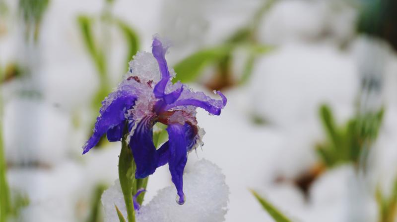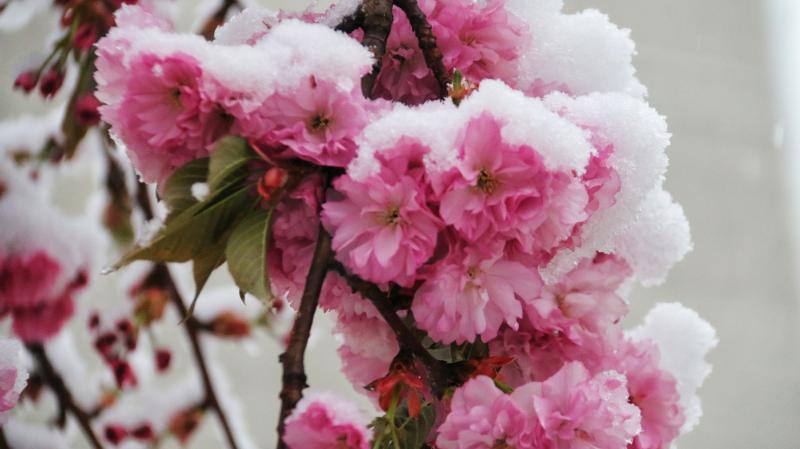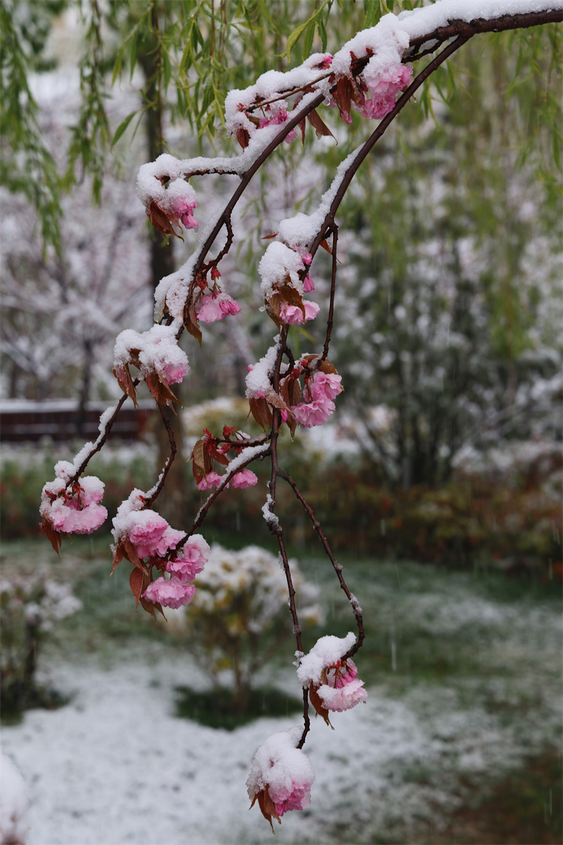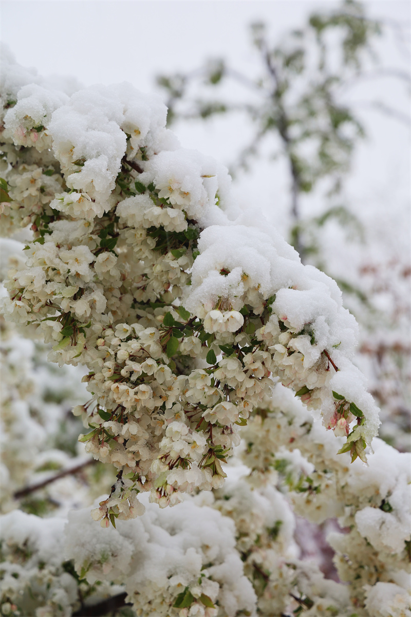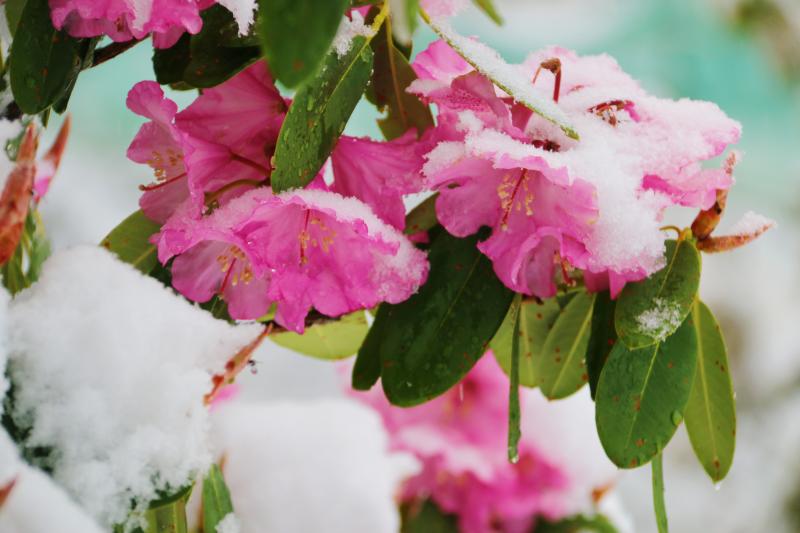 立夏節(jié)氣過(guò)后,香格里拉又迎來(lái)了一場(chǎng)大雪。櫻花、杜鵑花、鳶尾花在雪中競(jìng)相綻放,美如童話世界。