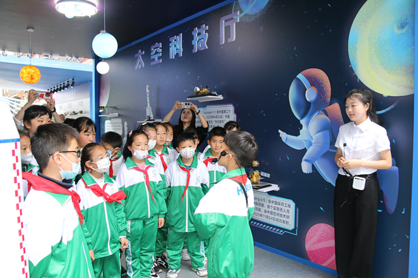 “航天夢(mèng)是中國(guó)夢(mèng)、華夏夢(mèng),神舟十六號(hào)載人飛船發(fā)射成功并進(jìn)入預(yù)定軌道。古人仰望星空,幻想上天攬?jiān)碌膲?mèng)想,在一代代中國(guó)航天人的努力下逐漸變?yōu)榱爽F(xiàn)實(shí)。”“紅領(lǐng)巾”講解員劉嘉沐在解說(shuō)他負(fù)責(zé)的天空科技廳時(shí),將這一喜訊分享給了在場(chǎng)的同學(xué)們?!跋M芙枭裰凼?hào)載人飛船發(fā)射成功的機(jī)會(huì),在科普周活動(dòng)中普及航天知識(shí),讓更多的學(xué)生深入了解航天文化,引導(dǎo)青少年傳承航天精神、點(diǎn)燃航天夢(mèng)想。”州科協(xié)負(fù)責(zé)人告訴記者。
