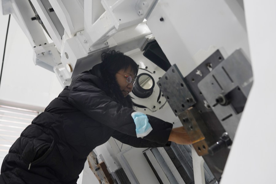 4月8日,中國科學院國家天文臺懷柔太陽觀測基地總工程師王東光在AIMS圓頂內(nèi)工作。新華社記者 陳杰 攝