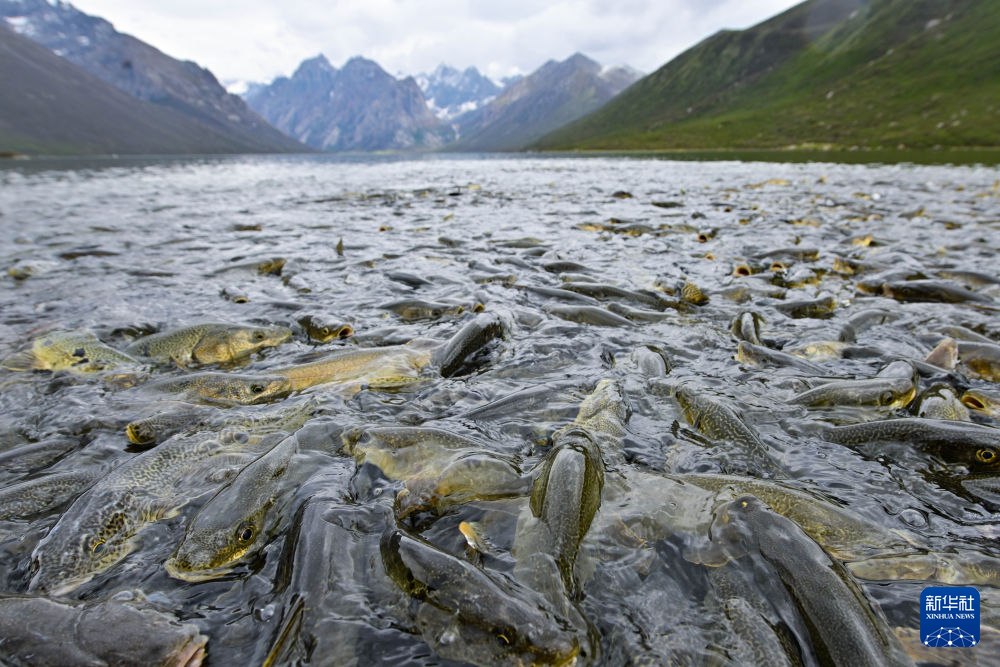 6月11日,在青海省果洛藏族自治州久治縣境內(nèi)的年保玉則,裸鯉在水中活動。新華社記者 張龍 攝