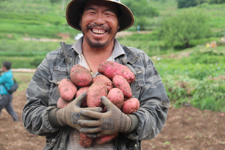 “以前我們種植傳統(tǒng)農(nóng)作物,收入低下,現(xiàn)在在政府的引導(dǎo)下,大規(guī)模種植洋芋,黨委政府還為我們解決銷售后顧之憂,收入成倍增加。”正在田間勞作的村民孫諾江初笑呵呵地說。