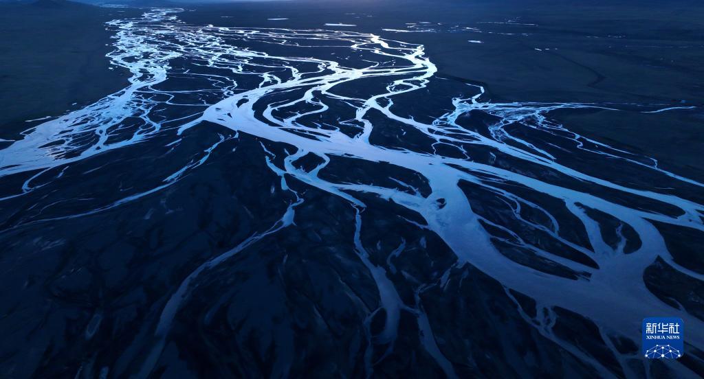 這是2022年7月27日在長江源地區(qū)拍攝的囊極巴隴河道,長江正源沱沱河和南源當(dāng)曲在此匯合(無人機(jī)照片)。新華社記者 肖藝九 攝
