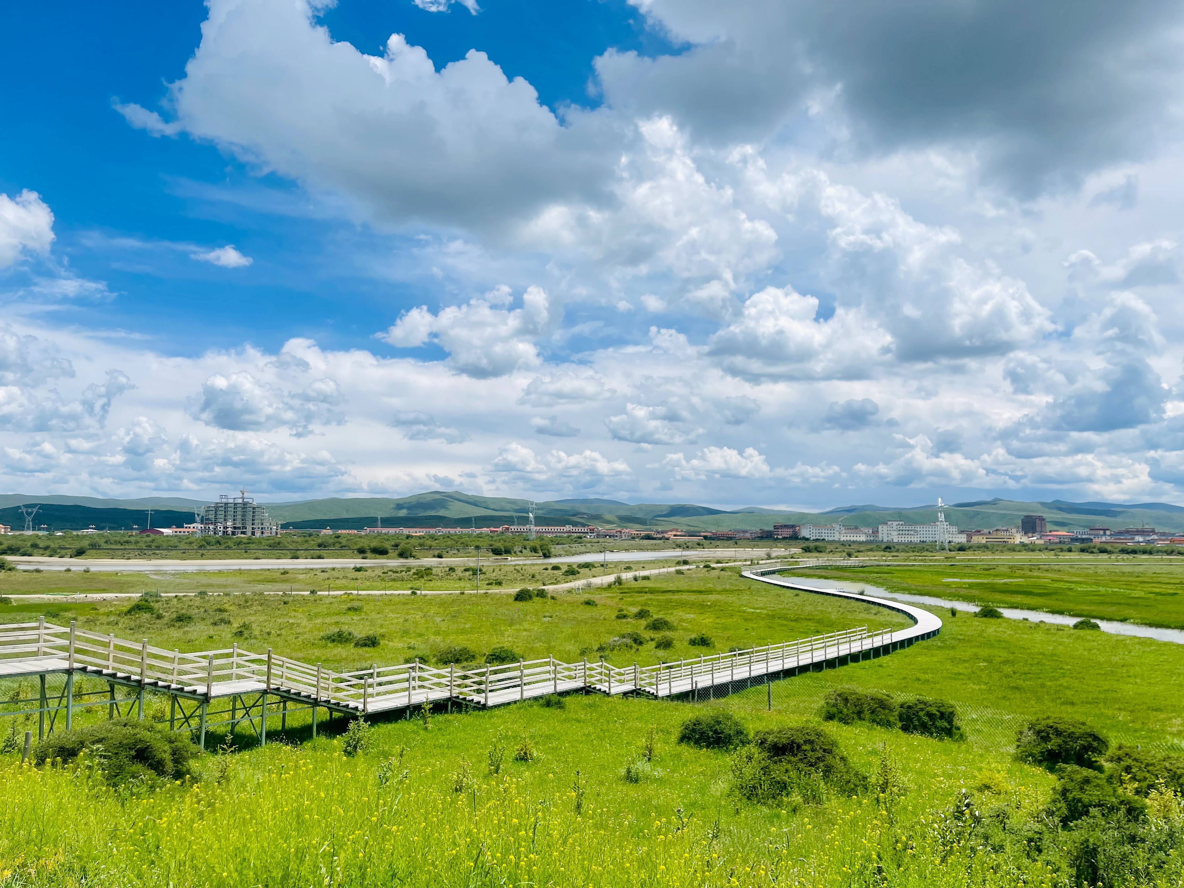 走在紅原縣牦?,F(xiàn)代農(nóng)業(yè)園區(qū)里,就像身處童話故事, 藍(lán)天白云之下,草原一望無(wú)際,風(fēng)景美得讓人沉醉。