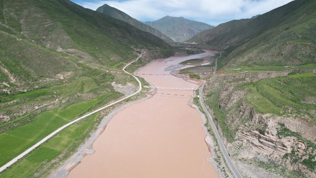 這是7月22日拍攝的通天河直門達水文站(無人機照片)。新華社記者 劉詩平 攝