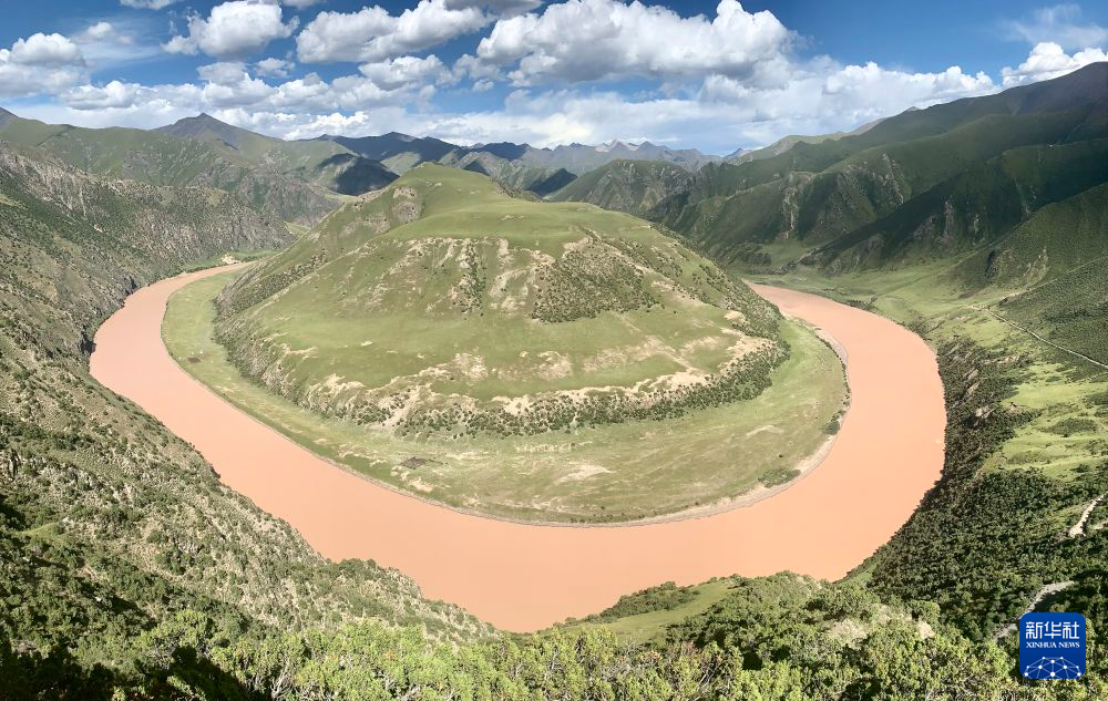 長江上游,通天河在青海省玉樹藏族自治州治多縣立新鄉(xiāng)葉青村環(huán)繞山體構(gòu)成一個(gè)完美的弧度,形成了今日的網(wǎng)紅打卡地——萬里長江第一灣。這里地形奇異,山水融合,有著宜人的自然風(fēng)光。