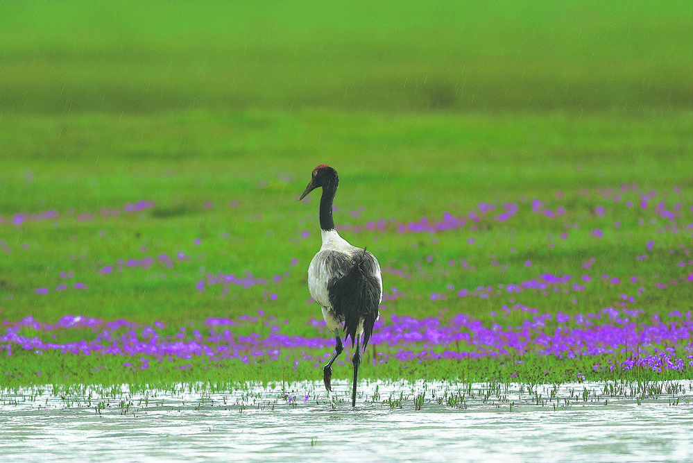 人鶴共生:濕地大省青海多措并舉引來黑頸鶴翔集