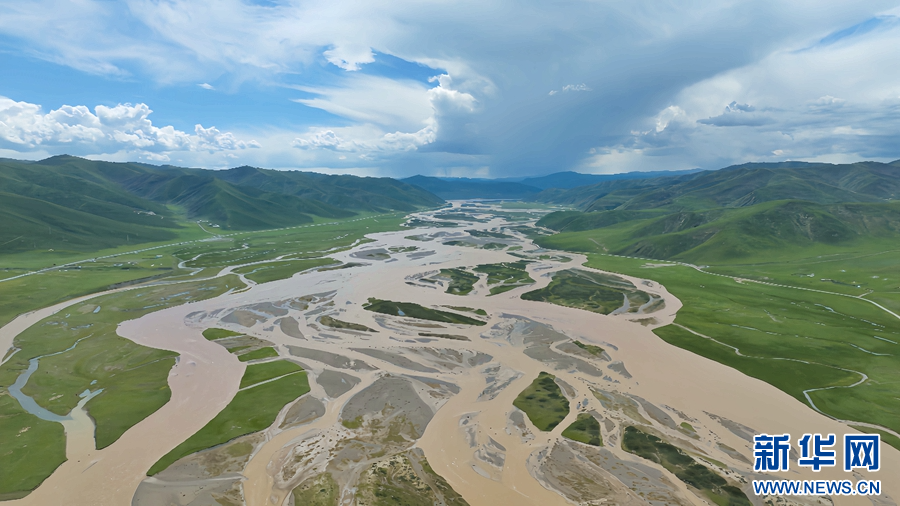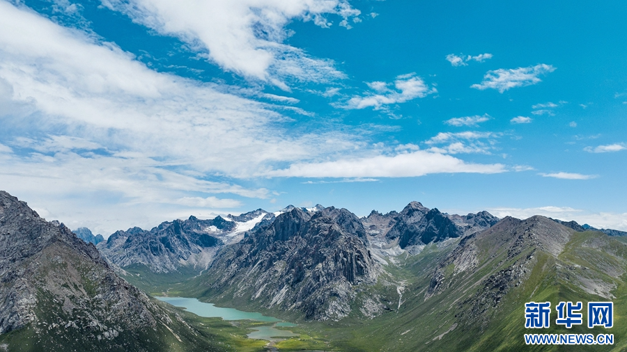 圖為在青海省果洛藏族自治州甘德縣境內(nèi)拍攝的夏日風(fēng)光(無(wú)人機(jī)照片)。新華網(wǎng) 宋忠勇 攝