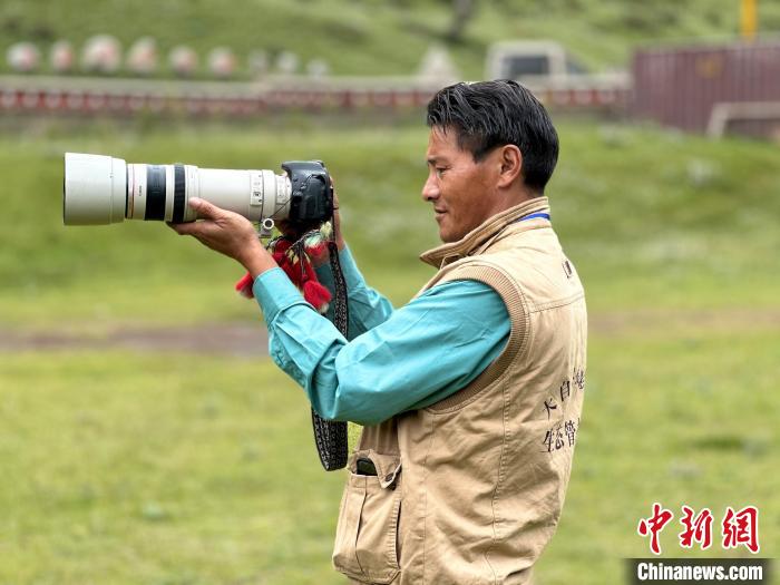圖為大自然攝影隊(duì)隊(duì)員索南文斗正在拍攝照片。劉洋 攝