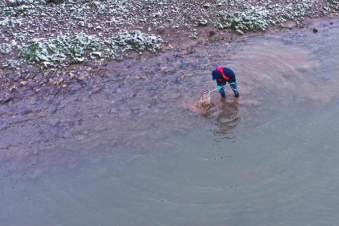 由水利部長江水利委員會長江科學(xué)院牽頭組織的2023年江源綜合科學(xué)考察正在長江源進(jìn)行,其中魚耳石是新增研究內(nèi)容。為了采集耳石,來自長江科學(xué)院水環(huán)境所的科考隊員劉晗頂著大風(fēng)和雨雪,穿著下水褲和隊友在長江源區(qū)多條河流中采集魚類樣本,經(jīng)常在冰冷的河水中守候十多分鐘。
