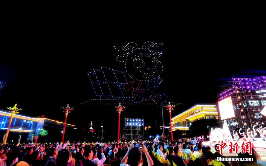 圖為無人機(jī)秀現(xiàn)場,無人機(jī)組成海南州成立70周年吉祥物“南小陽”。祁增蓓 攝