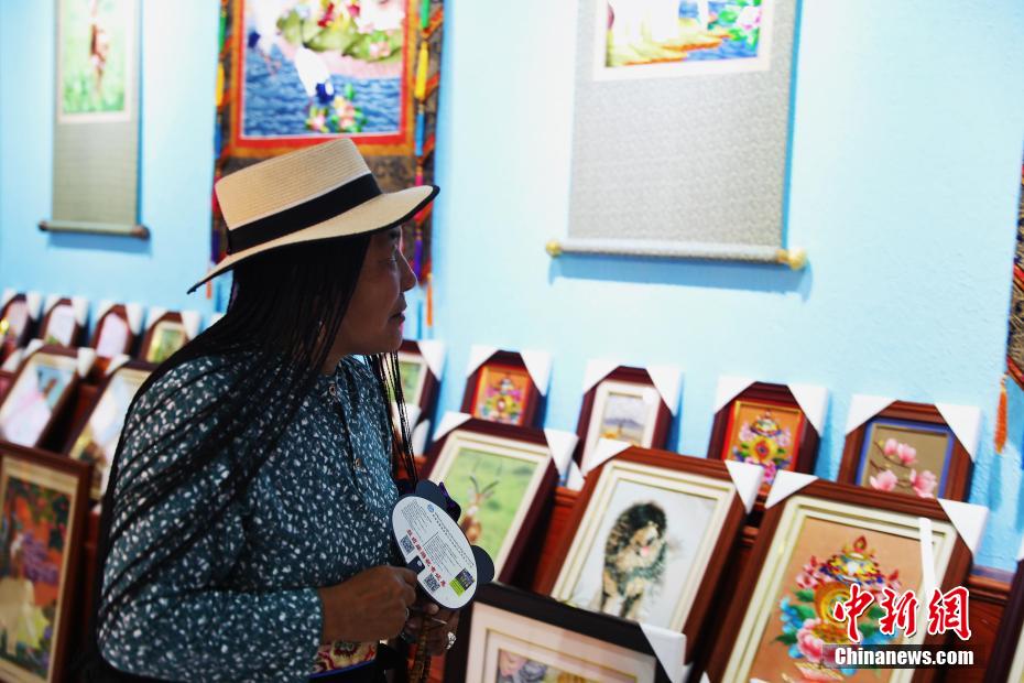 圖為游客體驗(yàn)藏繡藝術(shù)。薛蒂 攝