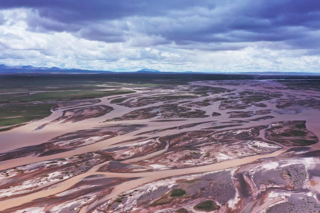 這是2023年7月26日拍攝的囊極巴隴河道,長(zhǎng)江正源沱沱河和南源當(dāng)曲在此匯合(無(wú)人機(jī)照片)。新華社記者 陳杰 攝