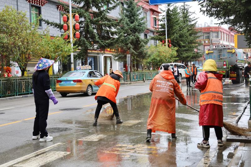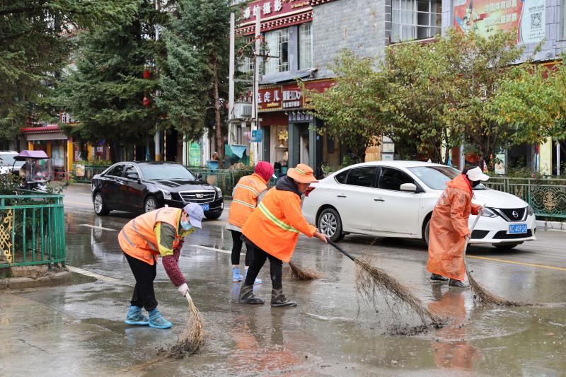 為盡快恢復(fù)城區(qū)潔凈容貌,香格里拉市和祥環(huán)保科技有限責(zé)任公司立即組織環(huán)衛(wèi)工人30名,抽調(diào)高壓水車2輛、掃地車4輛,積極開(kāi)展道路清淤工作,同時(shí)對(duì)下水道水口周邊的樹(shù)枝、雜物等進(jìn)行清理清運(yùn)。經(jīng)過(guò)近五小時(shí)的連續(xù)作業(yè),成功恢復(fù)道路暢通整潔。
