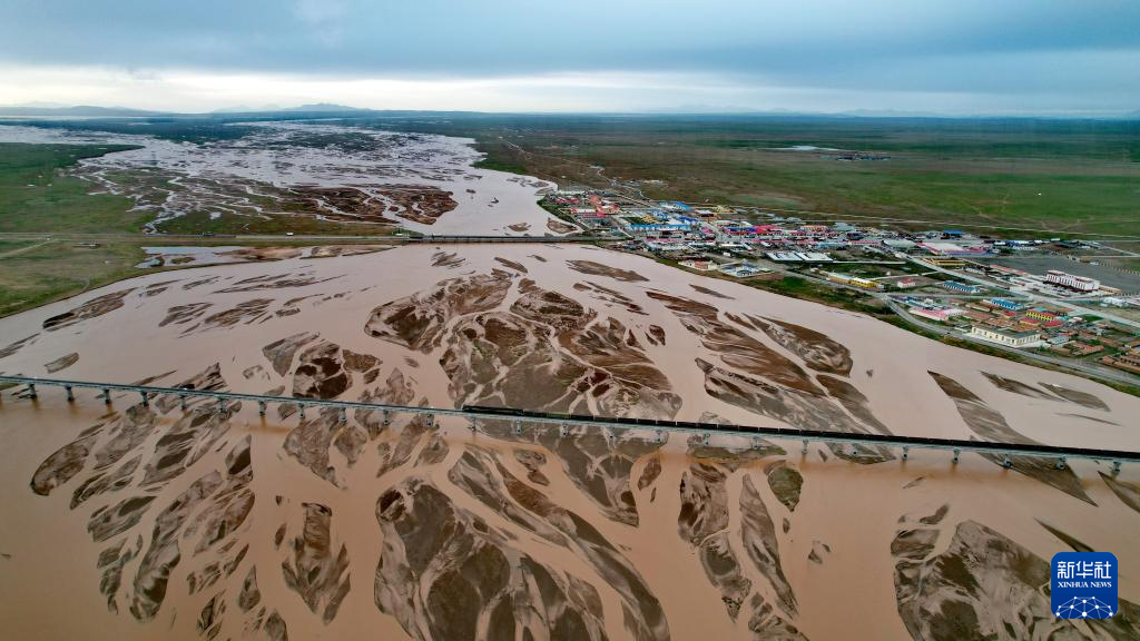 記者看到,在沱沱河與當(dāng)曲匯合處的囊極巴隴,匯合后河流水量增大,辮狀河道寬度超過3千米。青藏鐵路楚瑪爾河大橋之下的楚瑪爾河,暗紅色的河水宛如大地的血管系統(tǒng),流淌在寬闊的辮狀河道里。