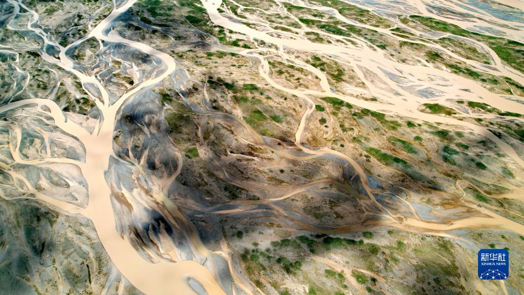 通天河支流的辮狀河道(7月26日攝,無人機(jī)照片)。新華社記者 劉詩平 攝