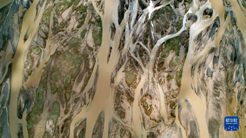 在沱沱河與當(dāng)曲匯合處的囊極巴隴拍攝的辮狀河道(7月27日攝,無人機(jī)照片)。新華社記者 劉詩平 攝