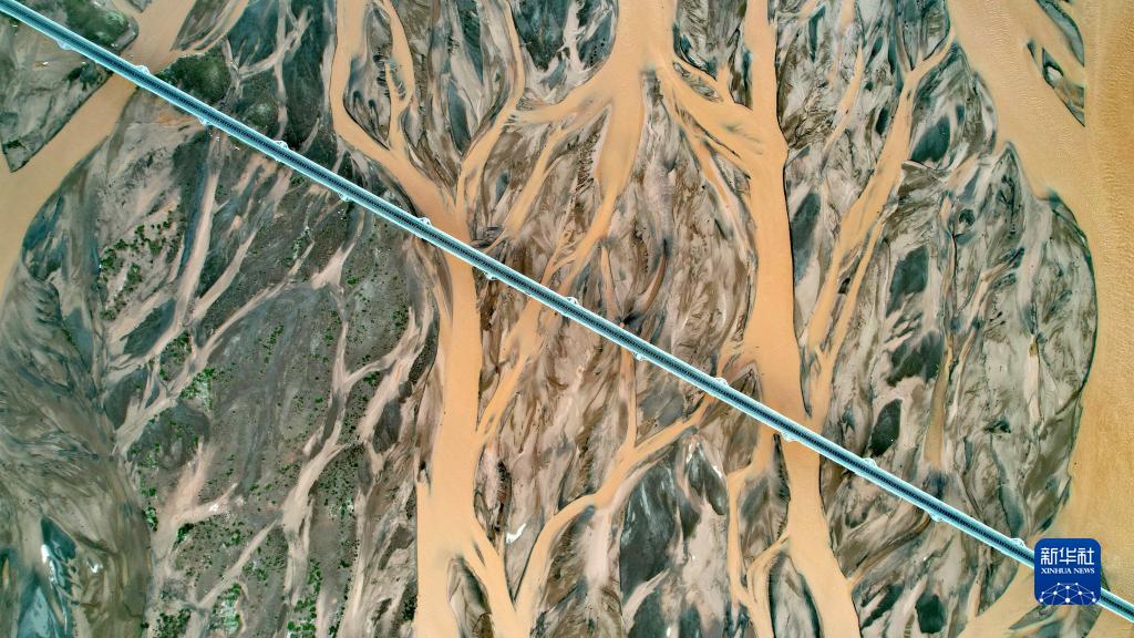 青藏鐵路跨過沱沱河的辮狀河道(7月26日攝,無人機(jī)照片)。新華社記者 劉詩平 攝