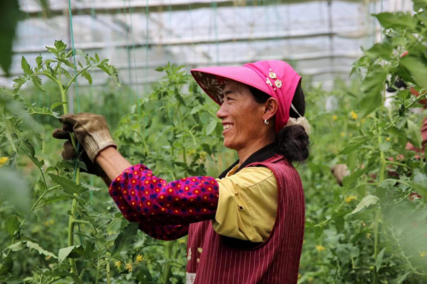 連日來(lái)的持續(xù)高溫,丹巴縣半扇門鎮(zhèn)團(tuán)結(jié)村村民陳宗花,就一直在喇嘛寺村黨支部書記袁強(qiáng)創(chuàng)建的曲登沙農(nóng)機(jī)專業(yè)合作社基地為辣椒澆水。勞動(dòng)強(qiáng)度不大,一天有100元的收入,年收入1.8萬(wàn)元。自從2015年到基地打工以來(lái),她的年收入就穩(wěn)定在2萬(wàn)元左右。