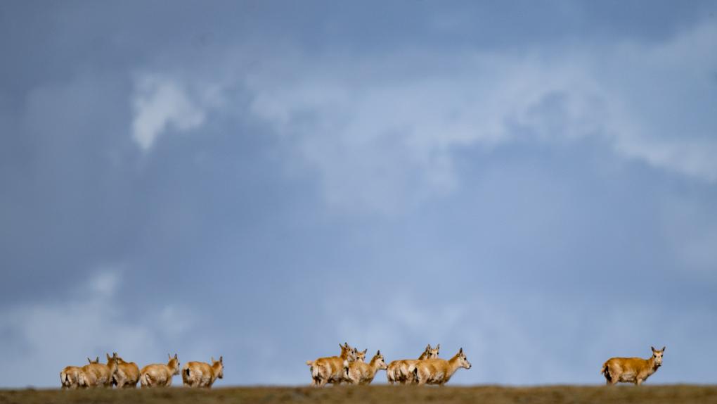 藏羚羊在卓乃湖附近活動(6月18日攝)。新華社記者 張宏祥 攝