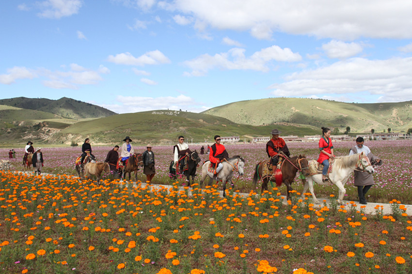 50多歲的村民丁巴尼瑪,在花海從事種植和管理,每個月有2000多元的收入,讓他感到欣慰的是,工作輕松又在家門口。圍繞“農(nóng)居變旅居、家居變客棧”目標(biāo),以創(chuàng)業(yè)帶動就業(yè),鼓勵周邊農(nóng)牧民群眾從事旅游服務(wù)。創(chuàng)辦旅游服務(wù)實(shí)體10余個,輻射帶動片區(qū)6個鄉(xiāng)鎮(zhèn)農(nóng)特產(chǎn)品銷售,開展專題旅游服務(wù)培訓(xùn)1000余次,培養(yǎng)本地季節(jié)性解說50人。通過景區(qū)平臺帶動固定就業(yè)100余人,季節(jié)性就業(yè)1.2萬人次。