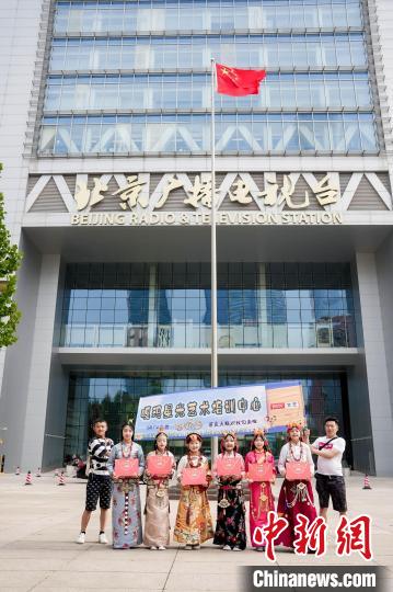 圖為孩子們?cè)诒本V播電視臺(tái)前合影留念。嘎瑪西周 供圖