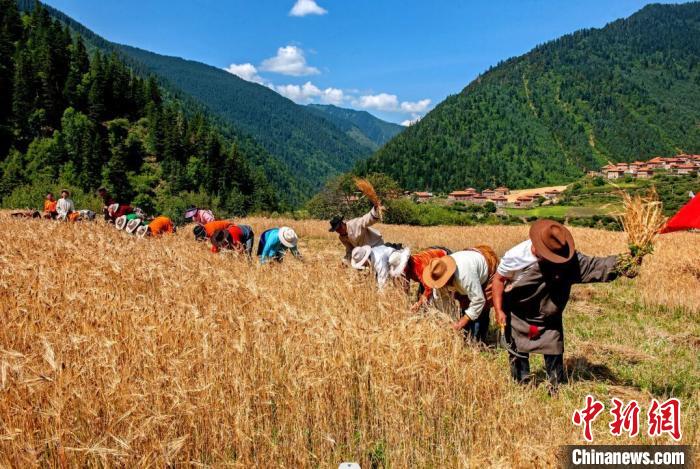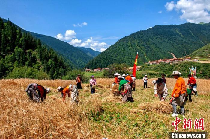 村民正在搶收青稞。楊正紅 攝