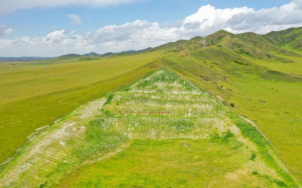 這是在四川省阿壩藏族羌族自治州若爾蓋縣唐克鎮(zhèn)嘎?tīng)柆敶迮臄z的治理后的坡面。新華社記者 王曦 攝