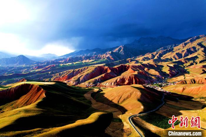 圖為航拍祁連山腹地色彩斑斕。薛蒂 攝