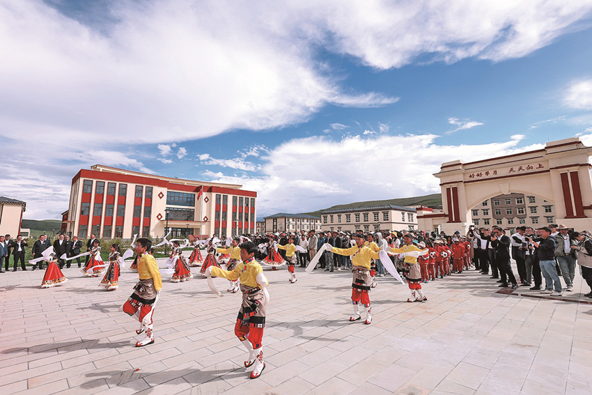 9月12日,走進(jìn)色達(dá)縣椒江希望學(xué)校,寬闊的操場、彩色的跑道、規(guī)范的球場,生龍活虎的學(xué)生們正進(jìn)行體育活動(dòng)。